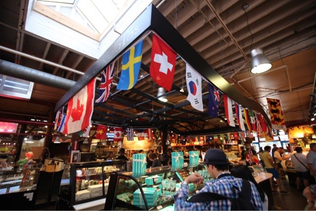 Granville Island – ziemlich überlaufen und voll, hier sind am Sonntag viele Leute auf dem Markt einkaufen, etwas essen oder auf dem Weg zu einer Bootstour