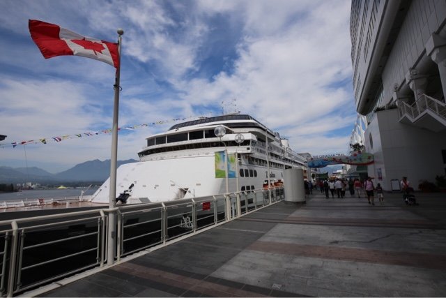 Kurz vor halb acht Uhr morgens legt die MS Regatta in Vancouver am Cruise Terminal an, an dem schon zwei andere Dickschiffe festgemacht haben – es dürfte heute also voll werden rund um den Hafen.