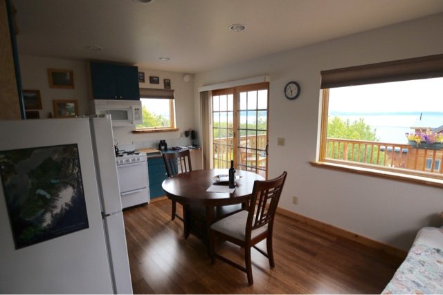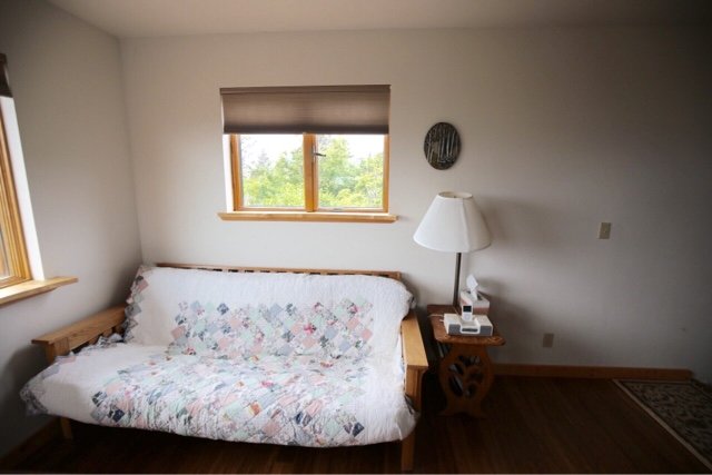 Kurz darauf gelange ich ans Ziel – Steven und seine Frau Robbie haben ein schönes grosses Stück Land, unterhalb des Overlook Points, aber immer noch mit toller Aussicht. Steve ist Schreiner und hat sowohl das Haus der Beiden, das Gartenhaus wie auch die Gästewohnung selbst gebaut, inklusive des Innenausbaus. Neben dem Denali View Inn B&B in Talkeetna ist das eine der schönsten Unterkünfte meiner ganzen bisherigen Reise! Gemietet habe ich die Wohnung über VRBO.com, Objektnummer 509090.