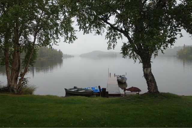 Auch heute morgen ist das Wetter noch ziemlich durchwachsen und nass, wenn auch nicht mehr ganz so stark verregnet wie gestern. Kurz vor 11 Uhr räume ich meine Cabin, verabschiede mich von Karen und ihrem verspielten Hund Charlie, und mache mich auf den Weg.