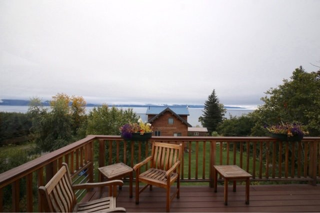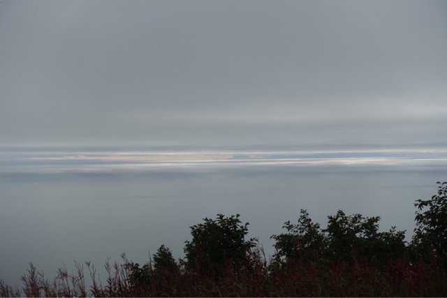 Die nächsten anderthalb Stunden auf dem Sterling Highway verlaufen normal, und erst als ich mich langsam Homer nähere, trübt sich der Himmel wieder ein. Am Overlook Point, den mir neben den Reiseberichten auch der Vermieter meiner Unterkunft für die nächsten Tage empfohlen hat, hätte man einen Bombenblick über die Kachemak Bay, die Berge, den Vulkan Augustine und die Barren Islands.
