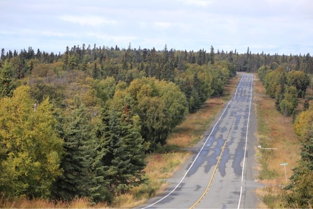 Nach Kasilof nehme ich den nächsten Umweg über die Cohoe Loop Road, die auf Google Maps auch nach einer vielversprechenden Küstenstrasse aussah. Von der Küste sieht man wegen der vielen Bäume dann leider nicht viel, alle Zufahrten in die Richtung sind privat und zT mit Barrikaden gegen die offenbar häufigen unerwünschten Besucher abgesperrt. Trotzdem lohnt sich der Umweg – und in der dreiviertel Stunde, die ich auf der Loop bin, sehe ich insgesamt 4 andere Autos.