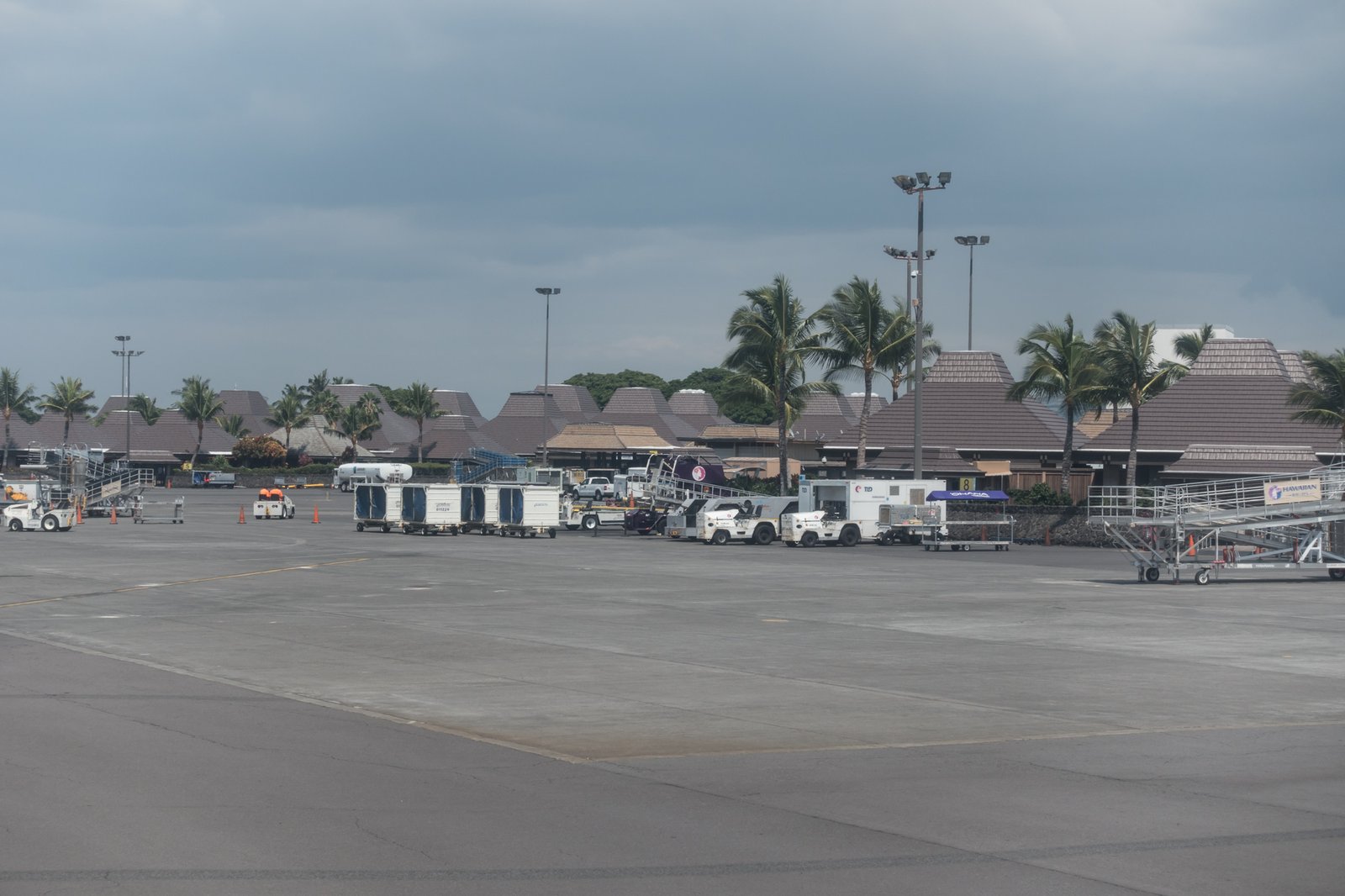 Der Chevy ist schnell abgegeben und auch der Shuttle Bus zum Flughafen kommt nur ein paar Minuten später. Beim Check-in und in der Security fällt wieder auf, was ich schon bei der Ankunft beschrieben hatte: der Flughafen ist zwar stellenweise überdacht, aber ingesamt befindet man sich überall im Freien. Neben einem kleinen Restaurant gibt es nur die Hawaiin Premier «Lounge», die als einzige Gebäude vier Wände und ein Dach haben, und somit klimatsiert werden können. Irgendwie schon etwas schräg das Ganze!