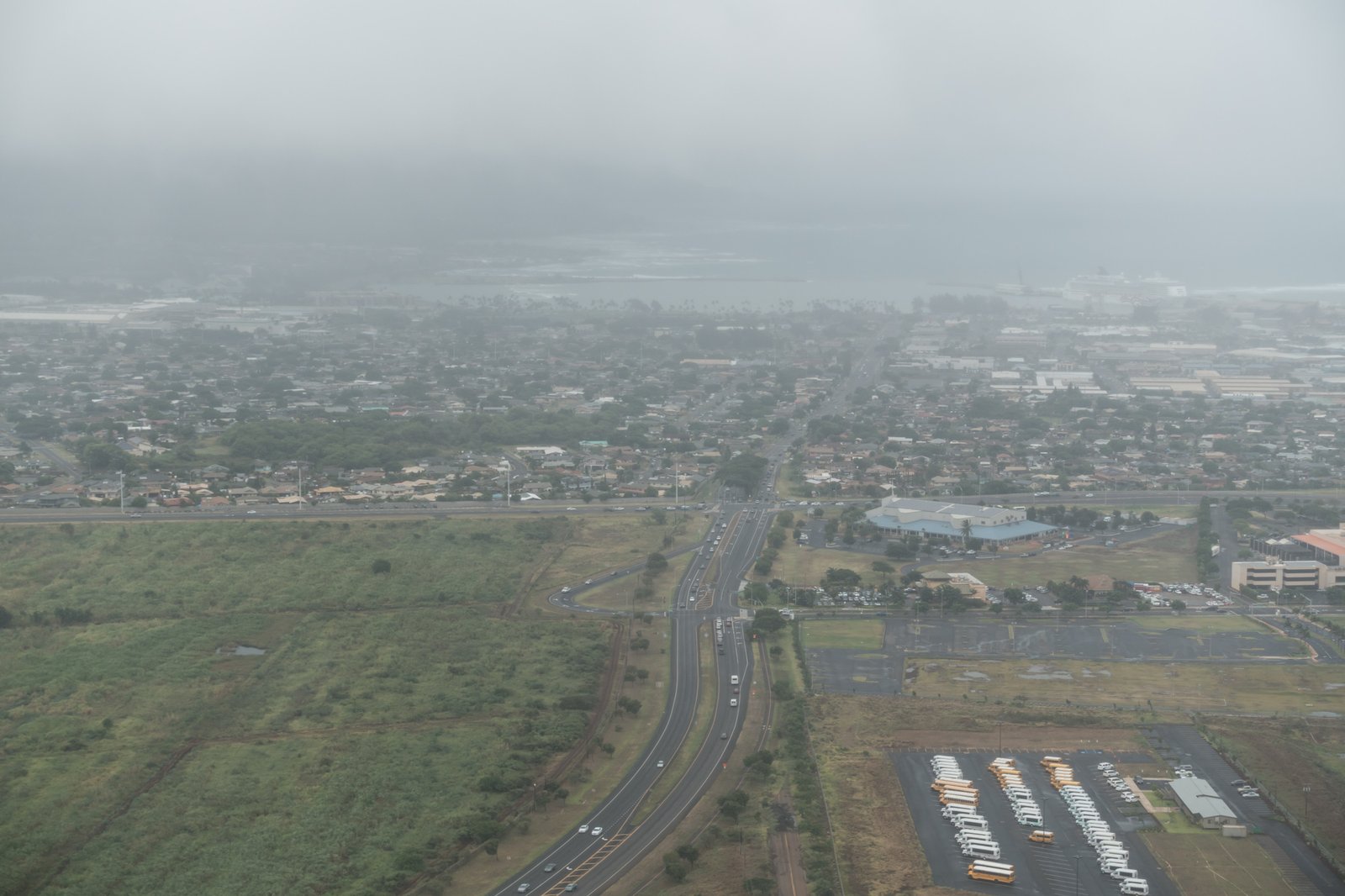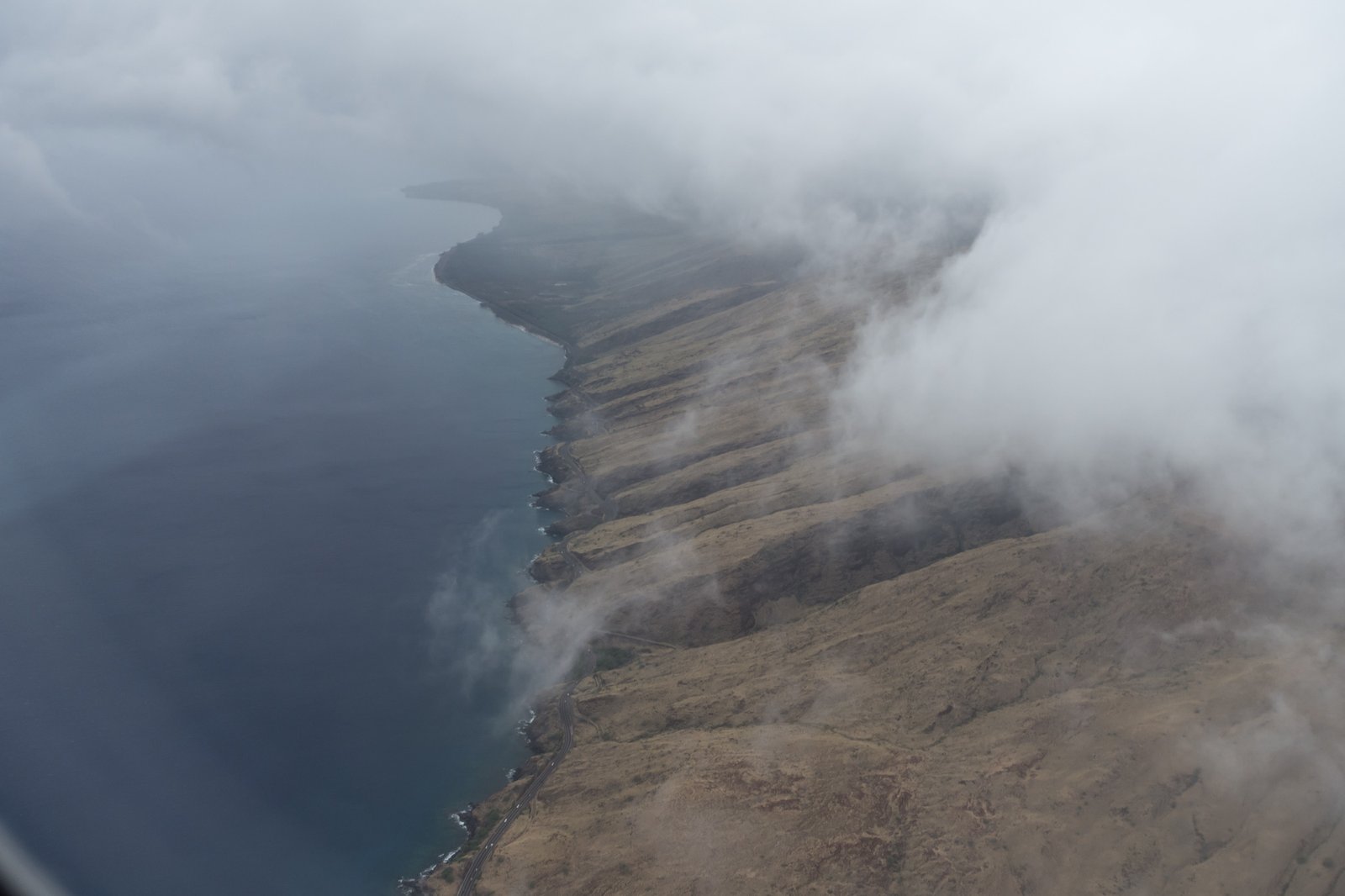 Leider hat Maui offenbar nicht mitbekommen, dass hohe Erwartungen an sein Wetter bestehen. Auf dem Weg von Big Island sammeln sich immer mehr Wolken an, und am Flughafen selbst regnet es.