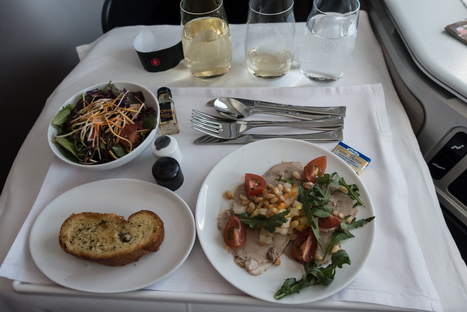 Satt, zufrieden und müde legt sich praktisch die ganze Kabine direkt danach zum Nickerchen hin, und ich bekomme auch knapp 3 Stunden Schlaf. 2 Stunden vor Ankunft gibt es zum Aufwachen noch eine leichte Mahlzeit, und dann sind wir auch schon bald in Vancouver!