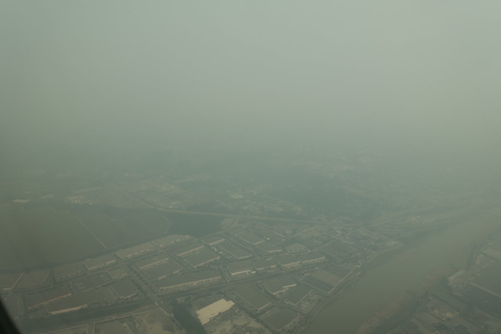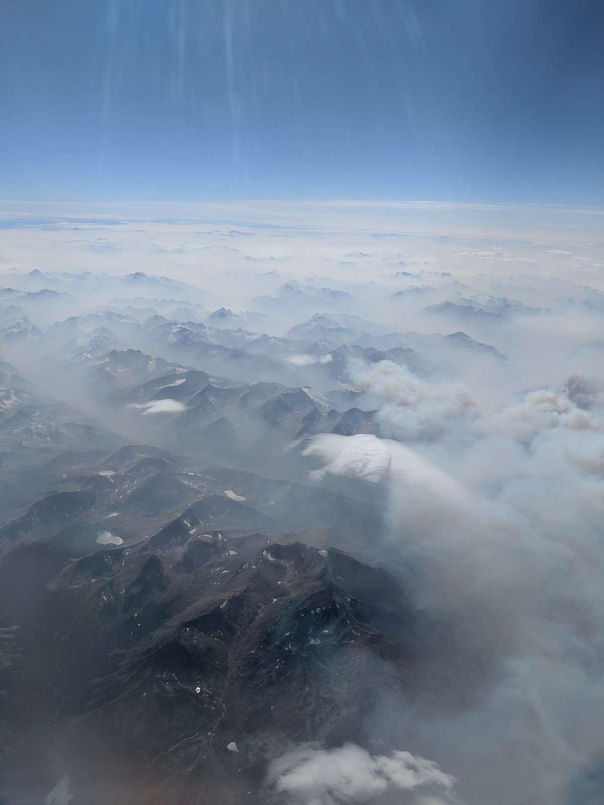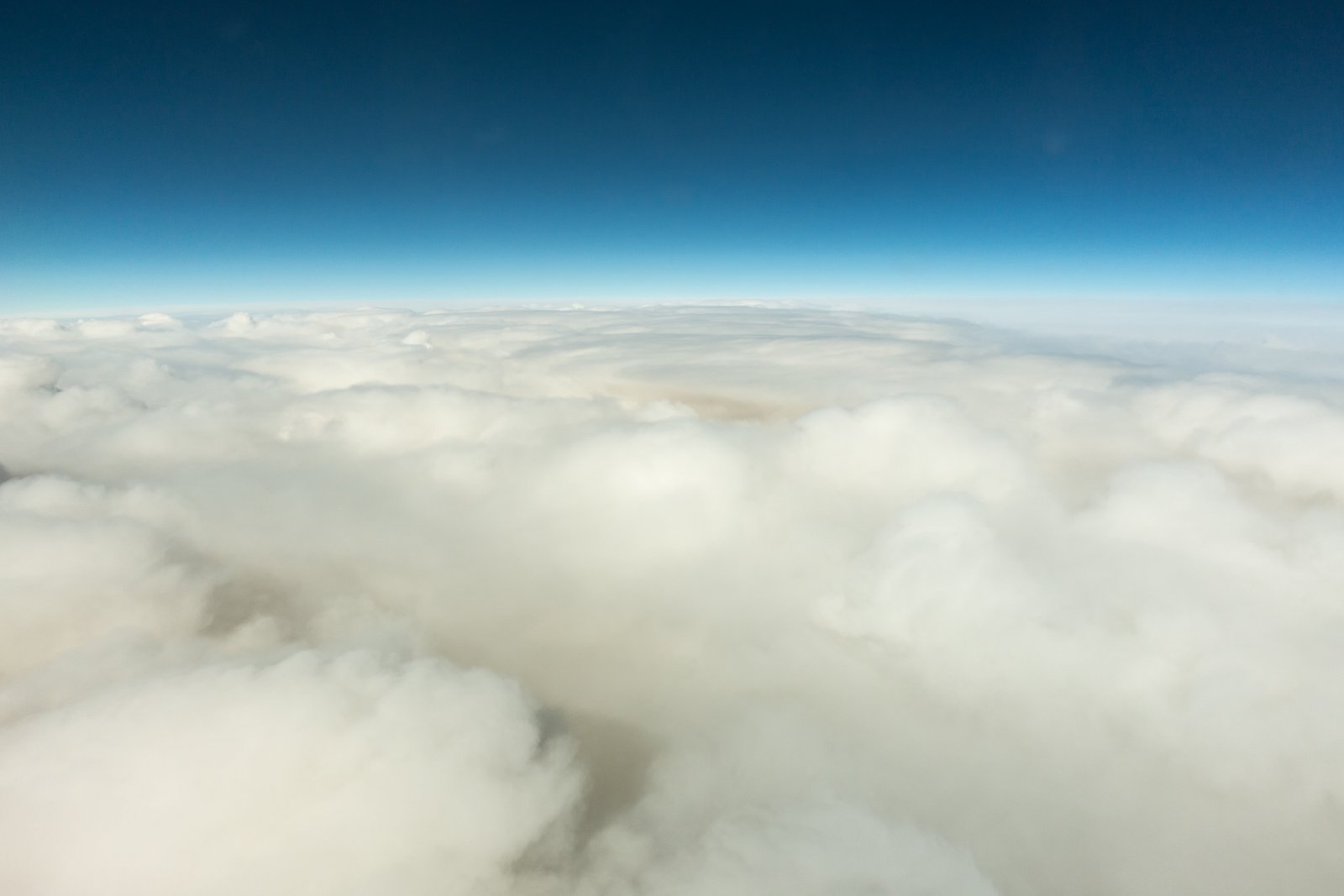 Mein Platz hat 2 eigene Fenster, aus denen ich einen sehr guten Blick habe – leider aber nur am Anfang auf Landschaft, danach nur noch auf Wolken, da der Himmel unter uns fast die ganze Zeit stark bewölkt bleibt.
